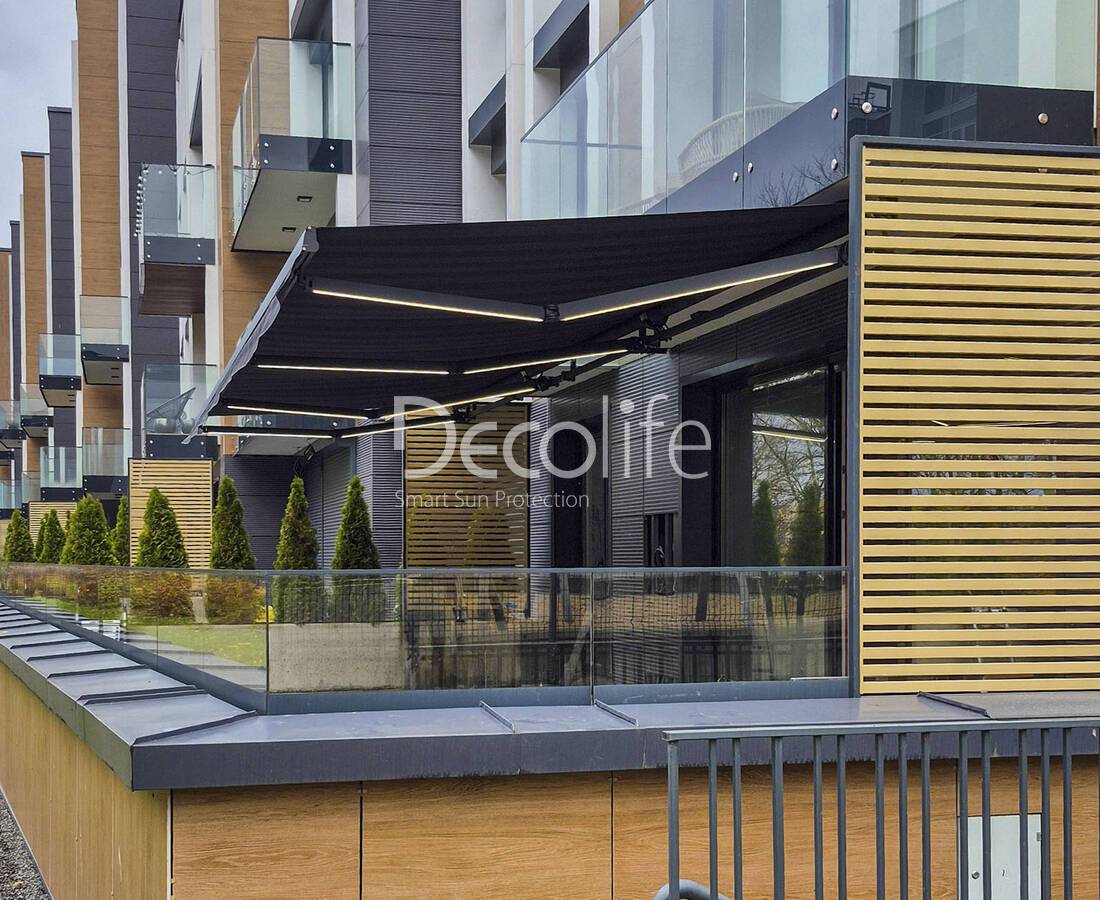 Маркиза кассетная Decolife G700, реализовано партнером "TENT VERTEX" - г. Алматы, жк "Dostyk Residence"