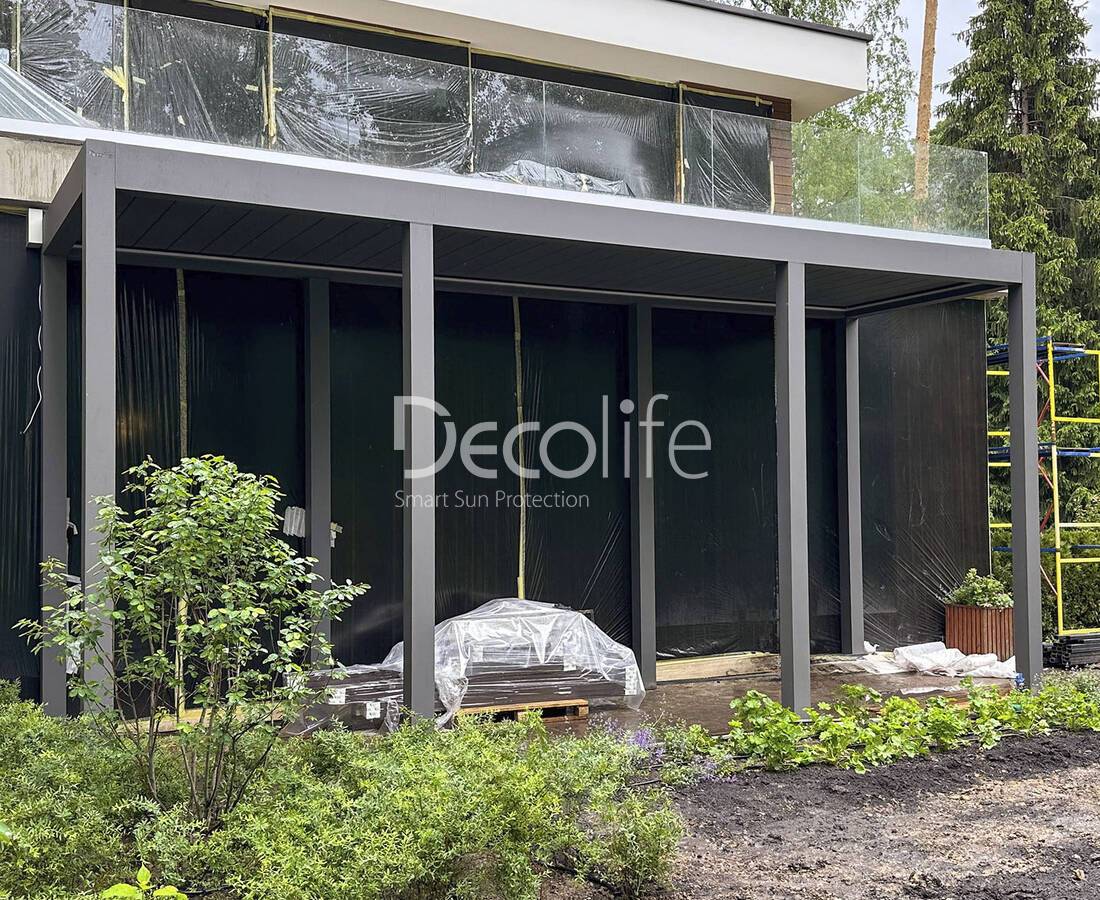 Пергола Decolife B600 PIR + Остекление S100 + Стеклянное ограждение B50 - Московская обл., КП Елочка
