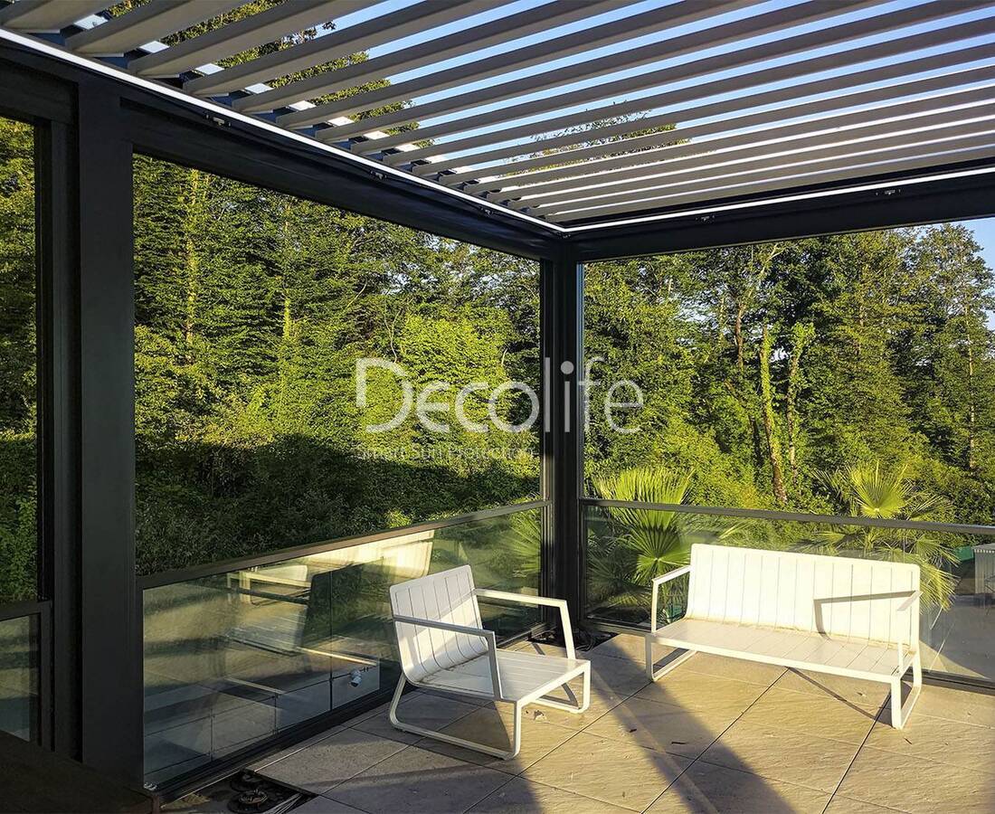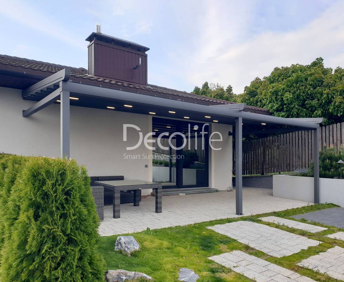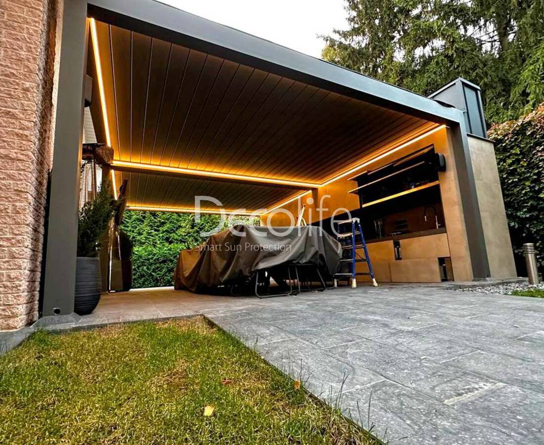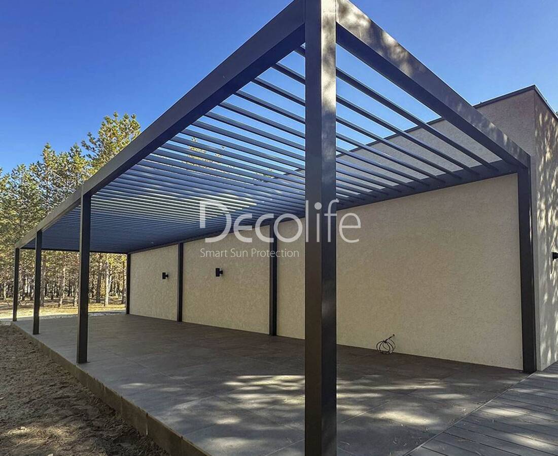 Пергола Decolife со статичными ламелями В200 MAF + Bioclimatic B500-20П, объект реализован партнером "Территория комфорта" - г. Тольятти