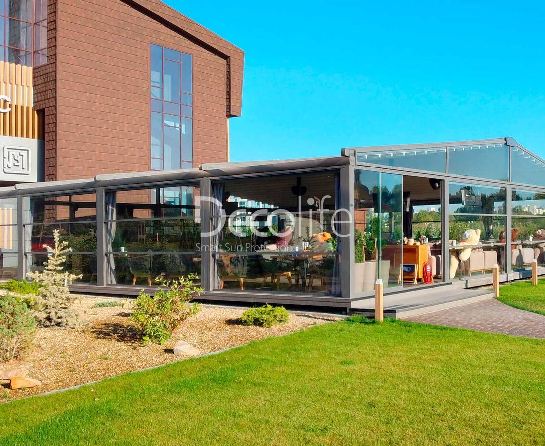 Перголы Decolife Bioclimatic B400-2П, B600 PIR + Раздвижное остекление S200 - г. Сочи