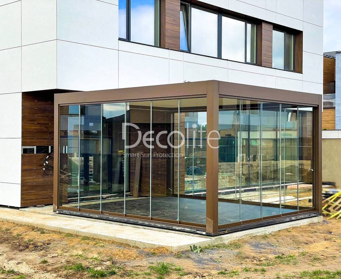 Пергола тентовая Decolife Project Light + Подъемное остекление W500 - реализовано партнером "ООО Люкс Террас" - Московская обл.